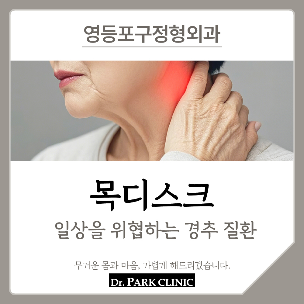 영등포구 정형외과 목디스크스마트폰, 컴퓨터, 태블릿 등 현대인의 일상은 온통 화면을 보는 시간으로 가득합니다. 이로 인해 많은 사람들이 ‘거북목’이나 ‘목디스크를 증상이 발생하면서 내원하는 사례가 늘고 있습니다.단순히 목이 뻐근한 정도의 통증으로 시작하지만, 방치하면 팔 저림, 어깨 통증, 손 감각 저하까지 이어질 수 있기에 주의가 필요한데요. 오늘 포스팅에서는 이 경추 디스크 질환의 원인부터 증상, 진단, 치료, 그리고 예방법까지 자세히 살펴보겠습니다. [목디스크는 어떤 질환인가요?] 이 경추 질환은 의학적으로 경추 추간판 탈출증(Cervical Herniated Disc)이라 불립니다. 우리의 목뼈는 머리를 지탱하고, 다양한 방향으로 움직일 수 있게 돕는 중요한 구조물입니다. 각 뼈 사이에는 ‘추간판..