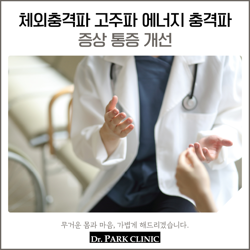 체외충격파는 고주파를 통해 염증 및 부종을 감소시키고, 손상된 신경의 재생을 돕는 치료입니다. 통증(증상)이 발생한 부위에 강력한 고주파 에너지를 쏘아 인체의 자가 재생을 활성화하고 신경세포의 활성을 둔화시켜 혈류량을 늘리고 통증을 줄입니다.