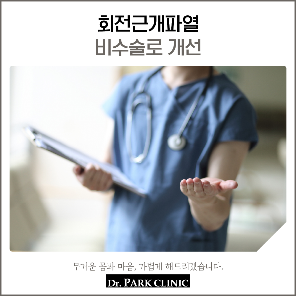 회전근개파열은 통증이 시간이 지나 사라지는 경우도 있지만 파열 자체는 자연 회복이 되지 않습니다. 만약 증상을 방치한다면 파열 범위가 점점 커져서 어깨를 자유롭게 사용하지 못하는 것은 물론 심한 경우 고통스러운 수술을 받아야 할 수도 있어요.