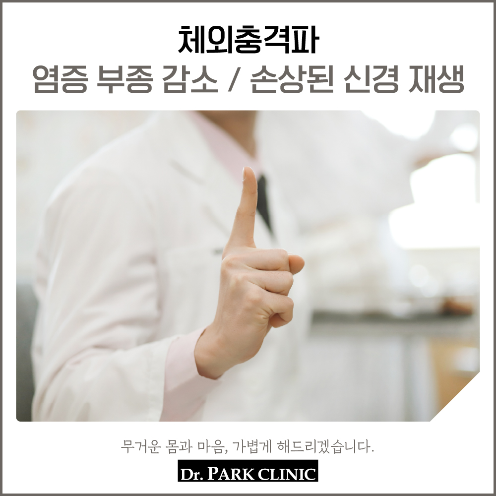 체외충격파는 고주파를 통해 염증 및 부종을 감소시키고, 손상된 신경의 재생을 돕는 진료입니다. 통증을 느끼는 부위에 강력한 에너지 충격파를 쏘아 인체 자가 재생을 활성화하고, 신경세포 활성을 둔화시켜 혈류량을 늘이고 통증을 줄입니다. 손상된 조직과 뼈를 활성화하여 통증을 완화하고 신체 기능을 개선합니다.