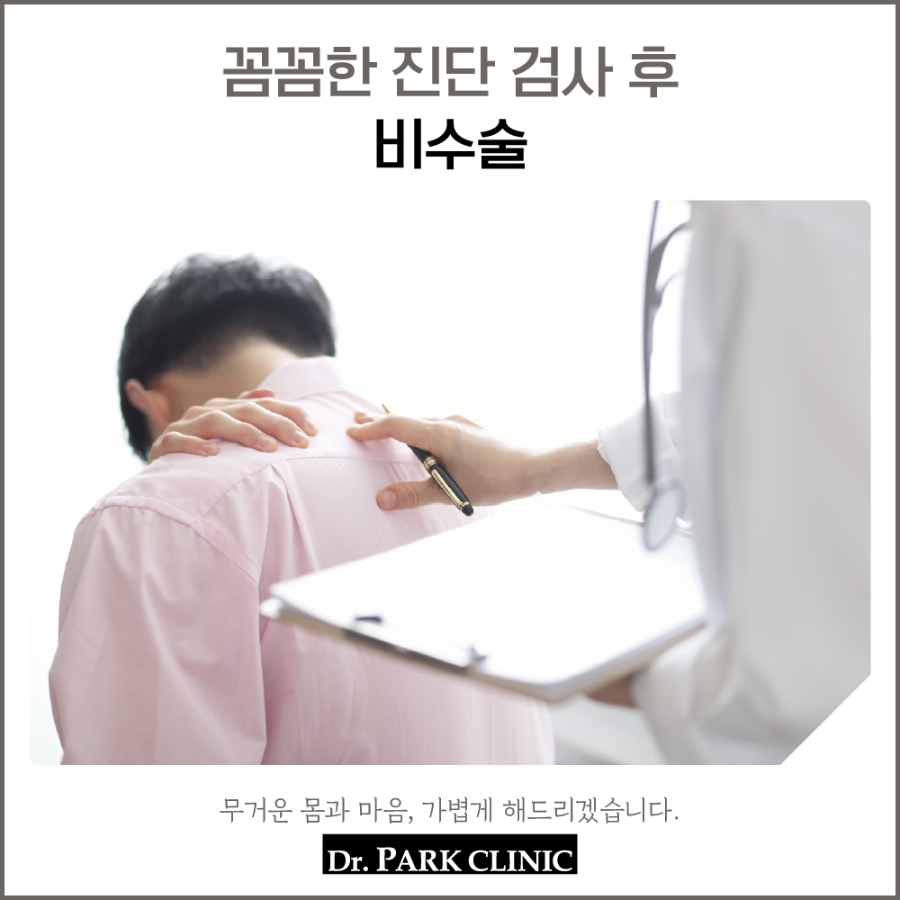 어깨는 신체에서 유일하게 360도 회전이 가능한 부위로 운동 범위가 넓기 때문에 그만큼 취약한 부위입니다. 따라서 평소와 다르게 아주 작은 통증이라도 약도 좋지만 올바른 증상 개선을 위해 병원에서 치료를 받아보세요. 오십견 개선을 위해 의료진과 상담, 검사 후 맞춤 진료를 하는데요. 무엇보다 안전을 먼저 생각하여 1:1 맞춤 비수술 진료를 하고 있습니다. 진료 부담이 적은 체외충격파, 도수치료 등을 진행하고 있어요.