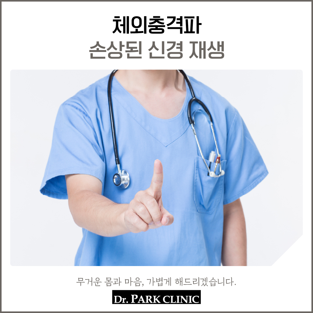 체외충격파는 체외에서 아픈 부위에 충격파를 정밀하게 전달하여 세포의 의도적 손상을 주어 질병 흉터 조직을 근본적으로 파괴하고 새로운 혈관의 형성을 촉진하여 손상된 조직을 재생시키는 진료입니다. 외부에서 증상 부위에 고주파 열에너지 충격파를 쏘아 염증 및 부종을 감소시키고, 손상된 신경의 재생을 도와줍니다. 손상된 조직과 뼈를 활성화하여 통증을 완화하고 신체기능을 개선합니다. 또한 통증을 느끼는 부위에 강력한 충격파를 쏘아 인체 자가 재생을 활성화하고 신경세포의 활성을 둔화시켜 혈류량을 늘이고 통증을 줄여줍니다.