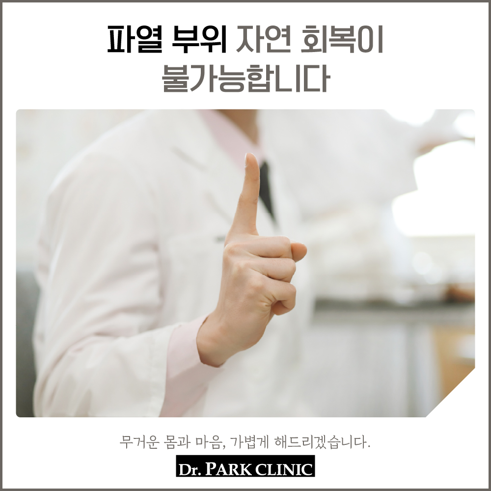 회전근개파열의 경우 이미 파열된 조직 자체는 자연 치유될 수 없습니다. 즉 치료하지 않고 방치하면 파열 크기가 점점 커지면서 어깨 운동할 때 힘이 잘 안 들어가게 됩니다. 등 뒤로 손을 올리기 어렵습니다. 여성의 경우 브래지어 끈을 풀기가 어렵습니다. 이런 상황을 그냥 방치하시면 안되고 병원을 방문하여 검사, 진료를 진행해 보세요.