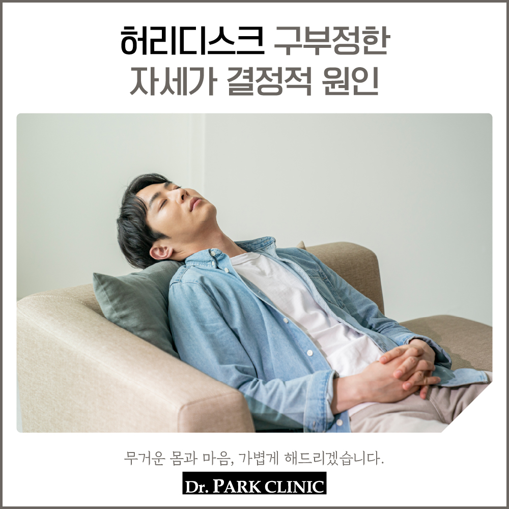 허리디스크 원인은 외부 사고 충격, 노화가 대부분이었는데요. 언제부터 하루 상당 부분을 의자에 앉아서 보내는 경우, 평소에 비스듬히 앉거나 다리를 꼬고 앉는 습관, 무거운 물건을 들 때 허리에 무리가 간 경우, 바르지 못한 자세 유지, 옆으로 눕거나 엎드려 자는 습관 등으로 발생합니다.