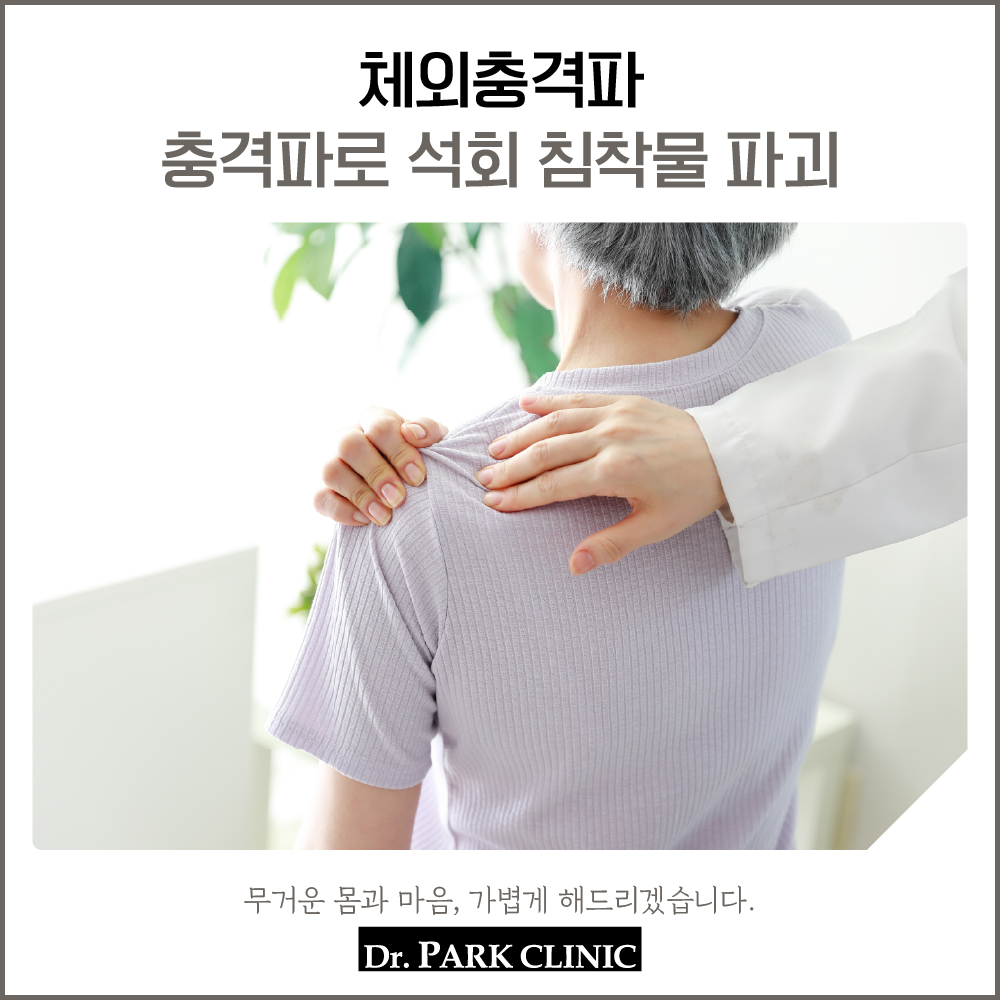 체외충격파는 근육 및 인대, 혈관 등에 충격파 에너지를 가하여 세포의 신진대사를 촉진시키고, 병변 부위에 신생혈관을 생성시켜 조직 재생을 유도하는 진료입니다. 통증을 느끼는 부위에 강력한 에너지 충격파를 쏘아 인체 자가 재생을 활성화하고 신경세포 활성을 둔화시켜 혈류량을 늘이고 통증을 줄여줍니다. 손상된 조직이 재생할 수 있도록 도와줍니다.