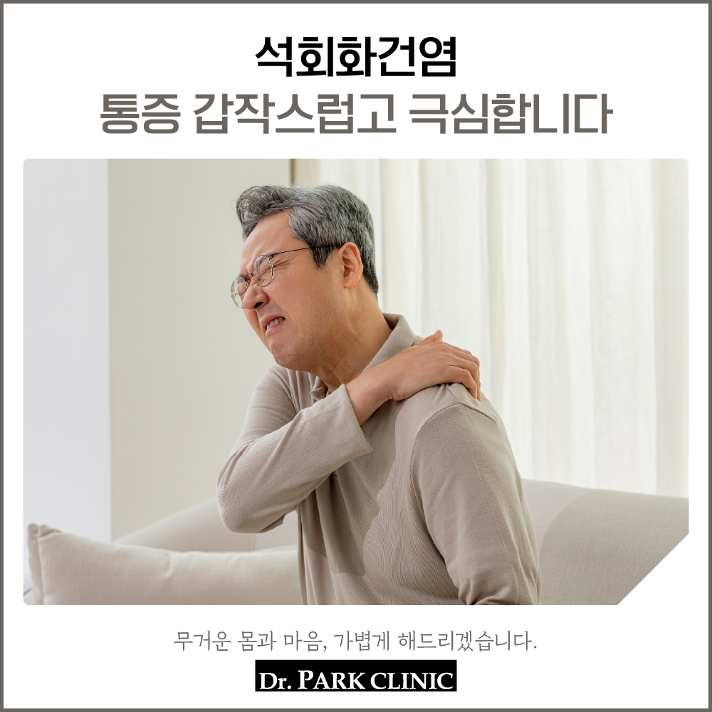 어깨 통증은 대부분 사고 충격이나 부상으로 발생하는데요. 하지만 굳이 사고를 당하지 않아도 발생하는 어깨 통증 오십견, 석회화건염, 회전근개파열 등을 아시나요? 특히 석회화건염을 아는 경우는 많지 않습니다. 지금도 갑작스럽게 극심한 어깨 통증으로 힘들다면 병원을 방문하여 검사 진료를 진행해 보세요.